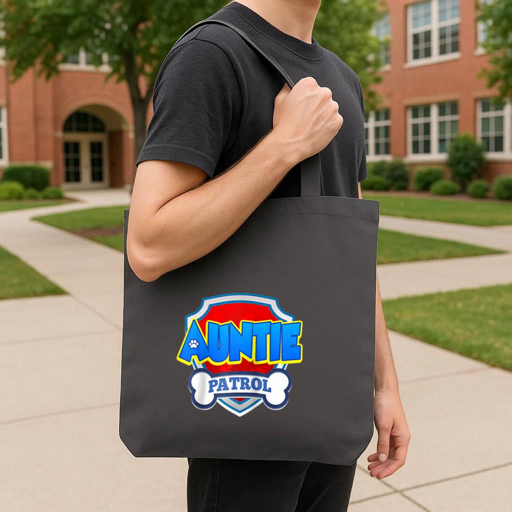 Chic, durable, and reusable, this Auntie Patrol Dog Tote Canvas Bag canvas tote bag is your daily go-to or a thoughtful gift for any occasion.